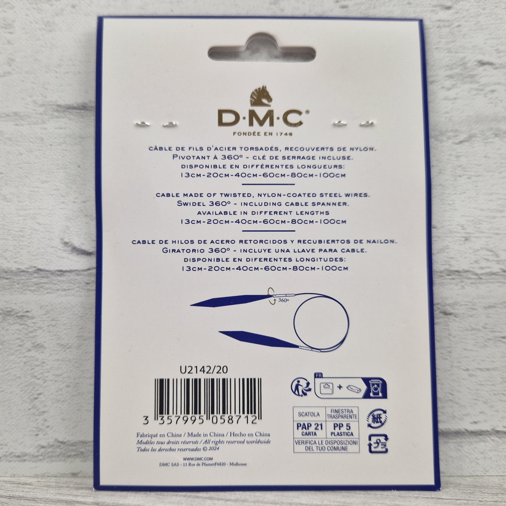 DMC cserélhető körkötőtűhöz kábel - 20 cm